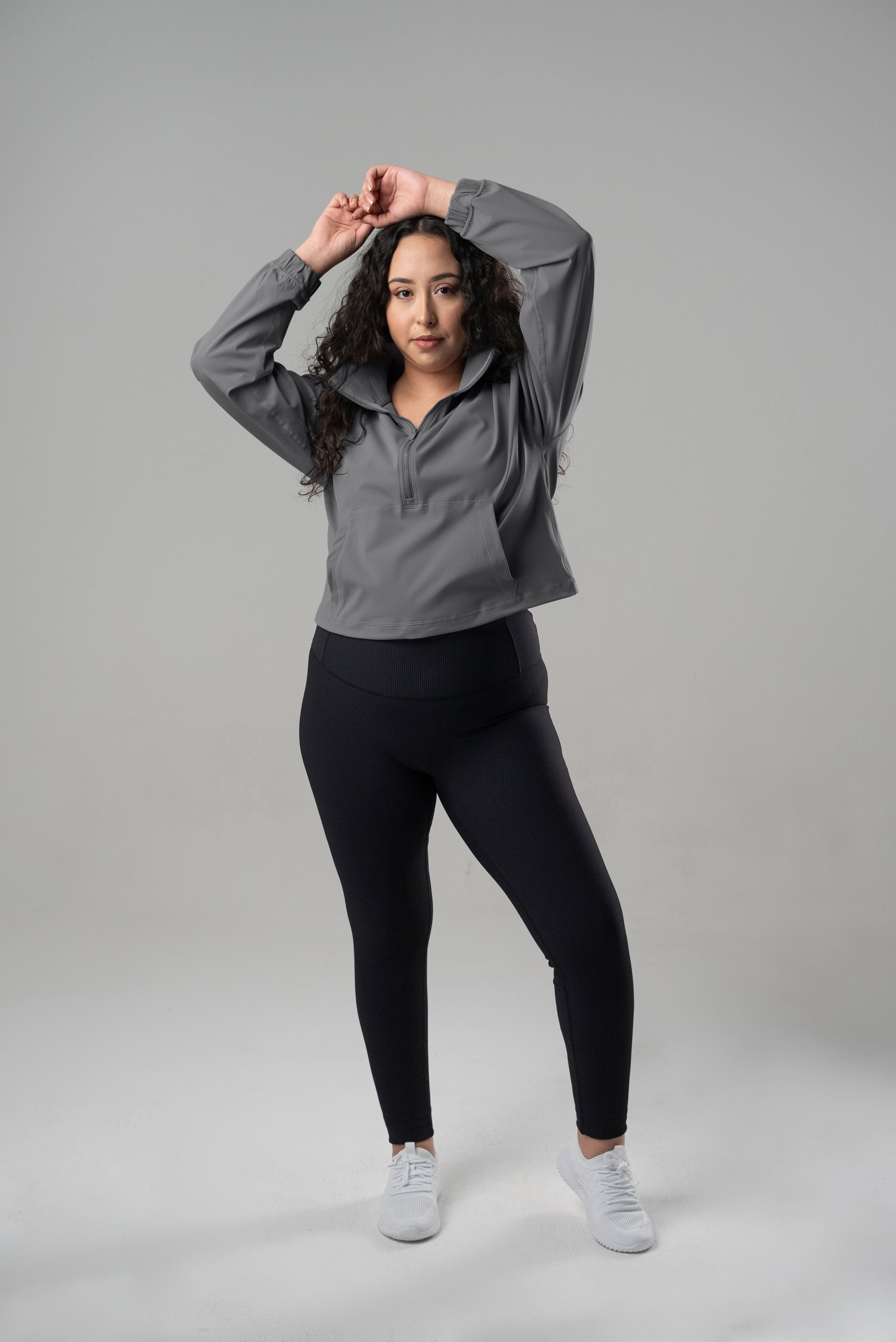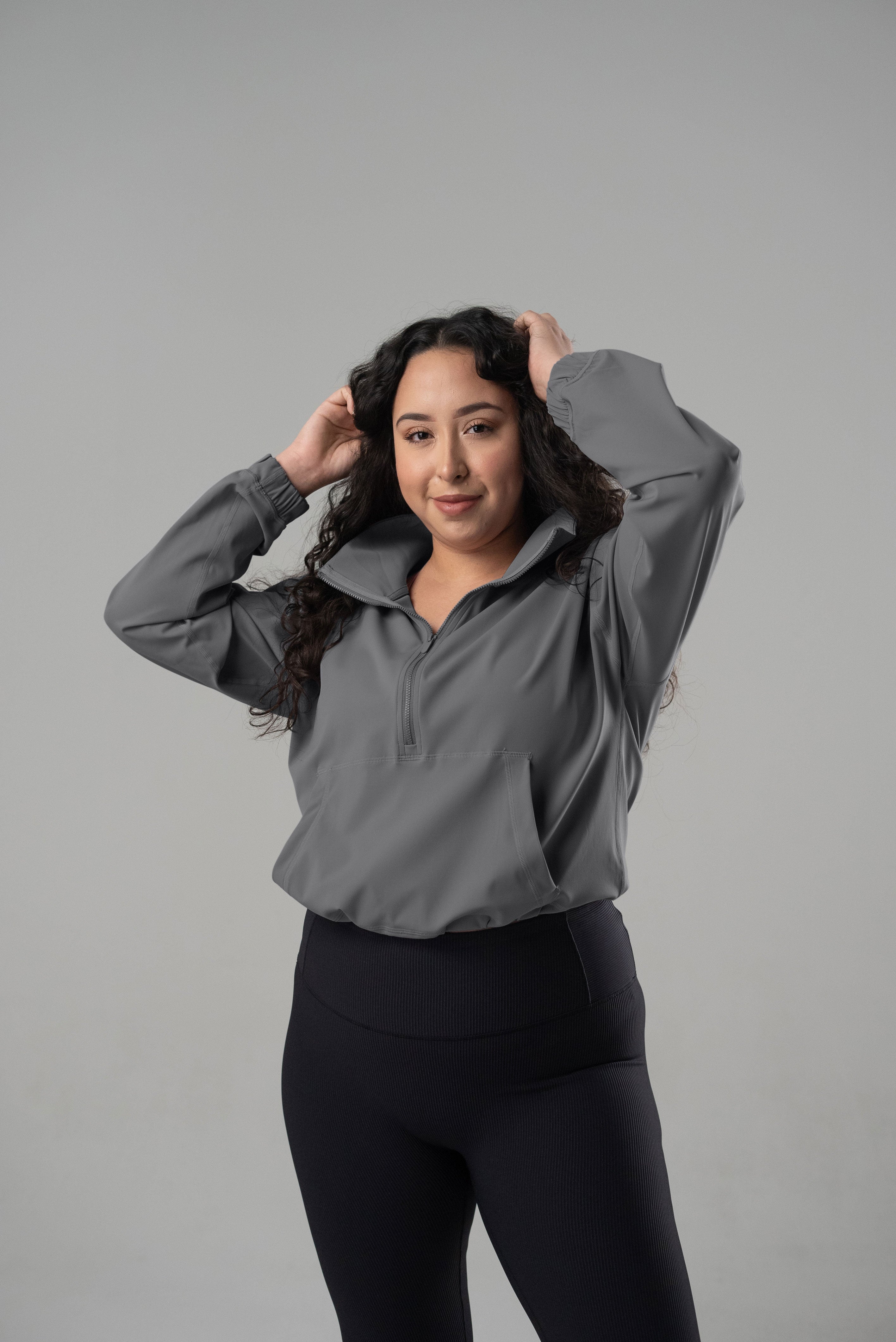 Great fabric! I love the elastic cincher at waist for a flattering look. Perfect weight for throwing on over tank to head to the gym. Super comfortable and beautiful colors! I got the steel and it goes well with all my different leggings to run errands or take my dogs for a walk. Highly recommend!